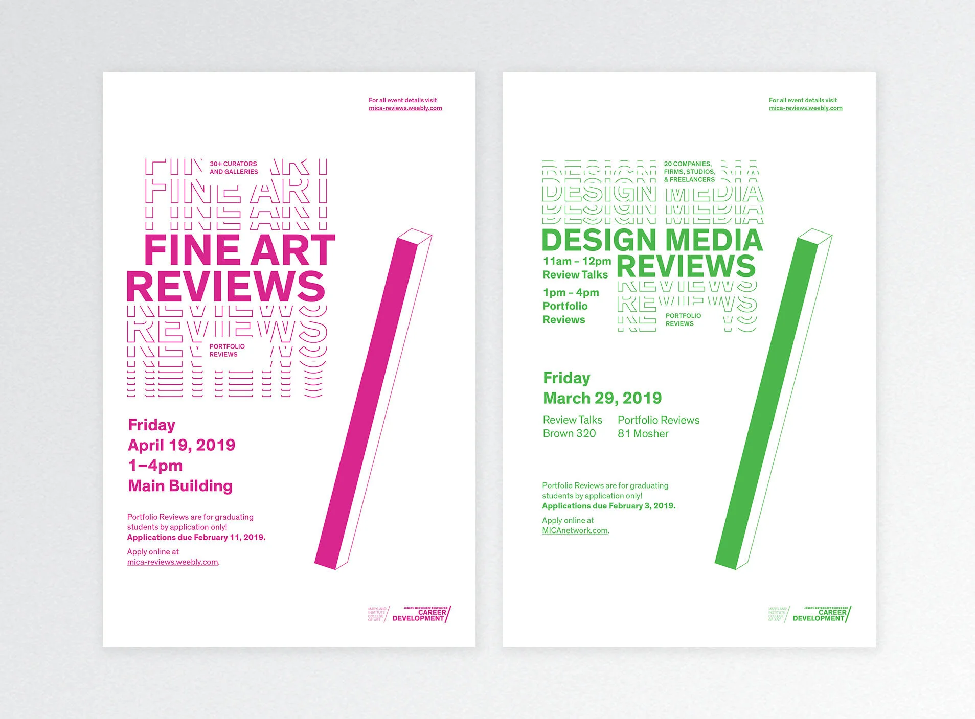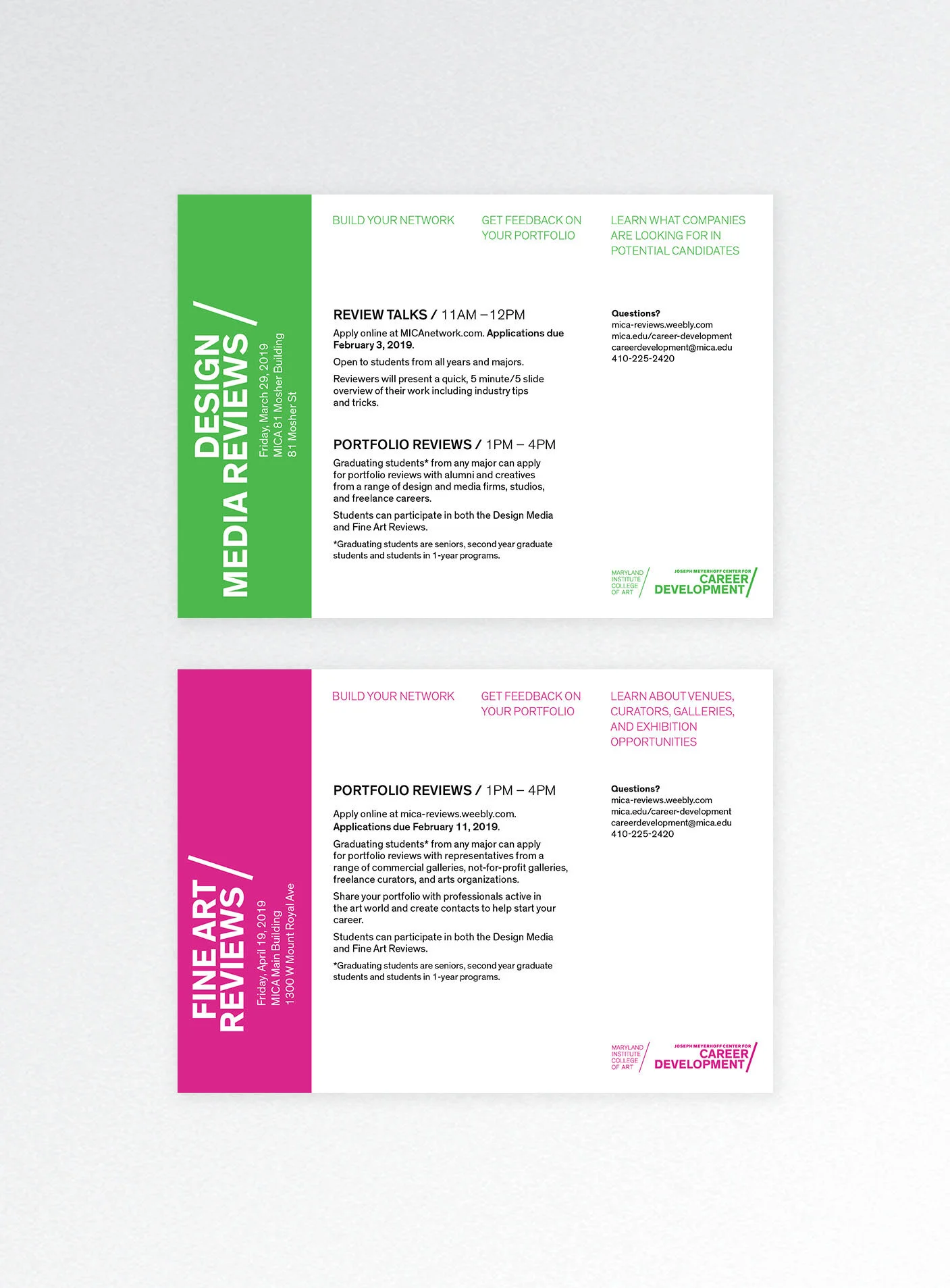 I developed an integrated campaign for The Reviews and Internship + Career Fair, both annual events connecting graduating seniors with creative professionals and creative professionals with emerging talent.
